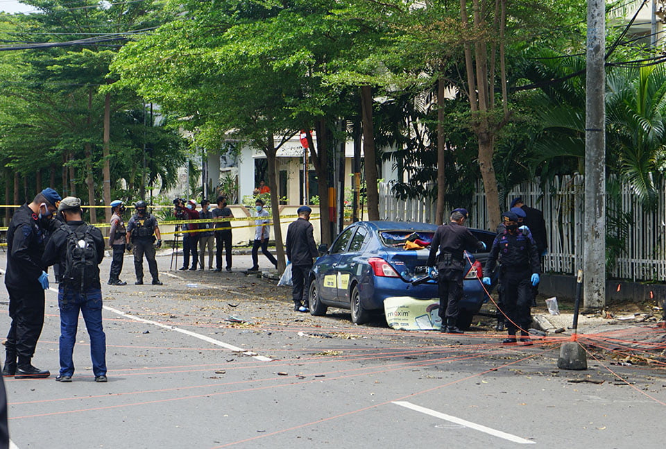Seperti diketahui, ledakan bom bunuh diri terjadi di depan Gereja Katedral Makassar pada pukul 10.28 Wita, Minggu (28/3). Pelaku bom bunuh diri yang berjenis kelamin laki-laki dan perempuan itu berboncengan menggunakan sepeda motor ke depan Gereja Katedral Makassar, Minggu (28/3/2021). (*)